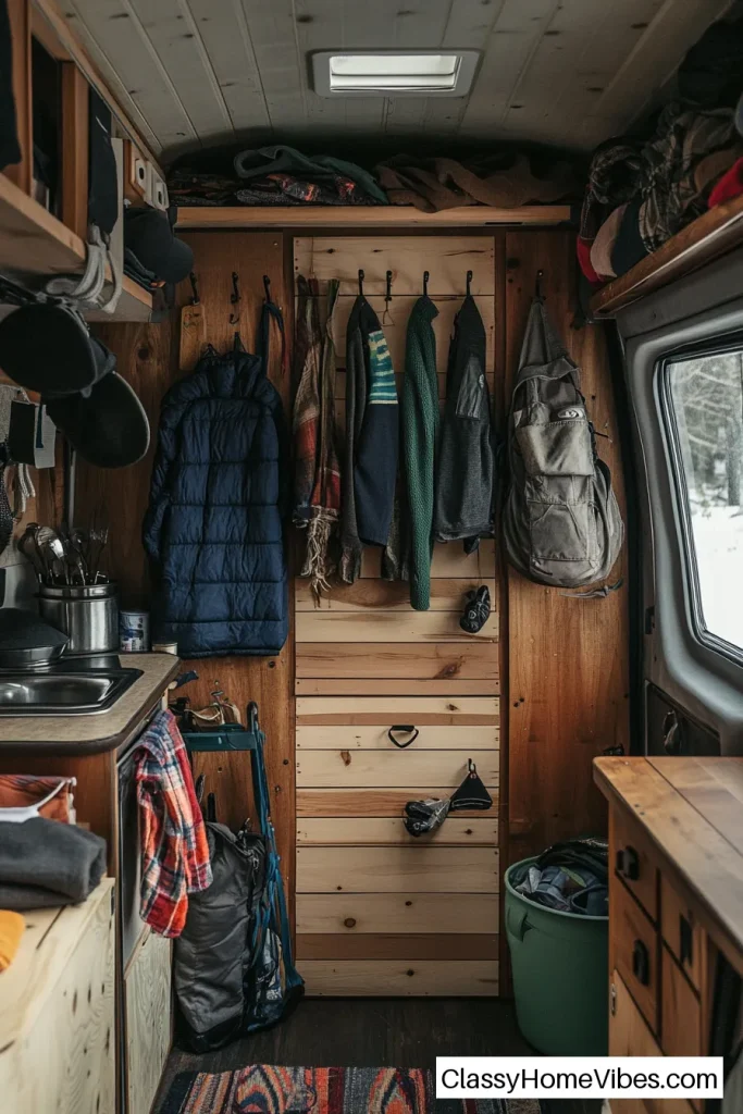 Hooks and rods are simple yet effective storage solutions for campers, especially in tight spaces. Hooks can be installed almost anywhere, from walls to the back of doors, to hang jackets, hats, towels, or kitchen utensils.